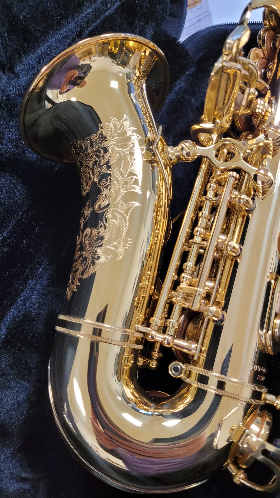 Caractéristiques techniques : Ensemble pavillon culasse démontable — Ergonomie des graves optimisée — Gravure originale faite à la main — Nacres naturelles — Vis de renfort réglage fa-sol — Vis de réglage clés main gauche — Ressorts acier bleuis